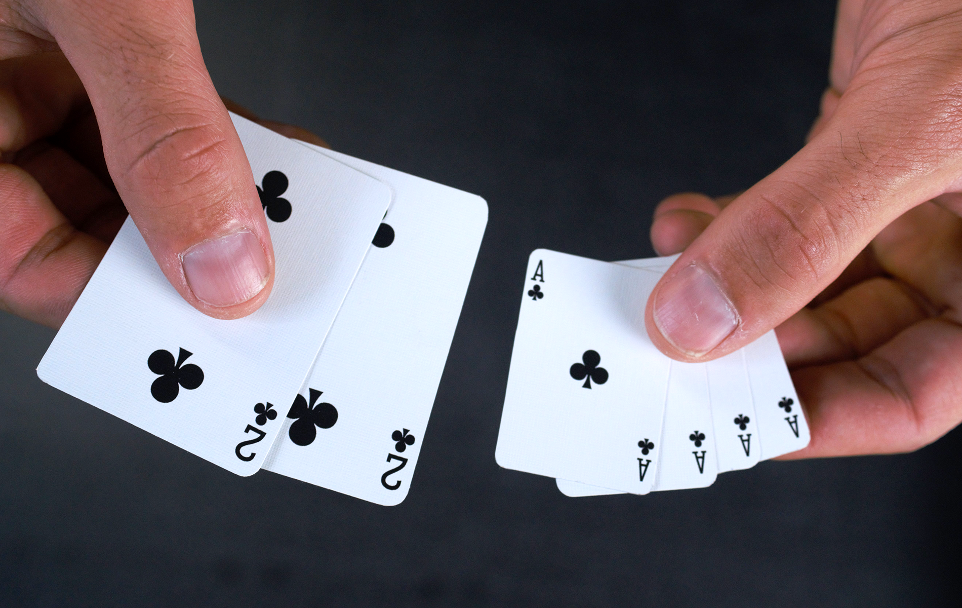 Split the 4 into two two's as the size changes as well as value! Then take the two twos and in an instant they transform into the four Aces, once again shrinking in size to match their value. Or, show the 4 of Clubs then it instantly explodes into four mini aces. Links up nicely with the 'Mini Me' gaffs.