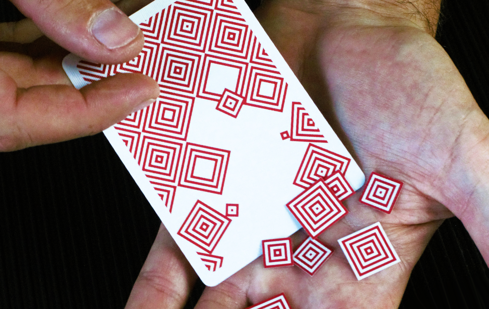 An instant treat that shows the squares from the back explode off into the real world. Spare card included to cut out squares from the back design. Can be used with the back animation of the Optricks Red Deck to create a startling moment.