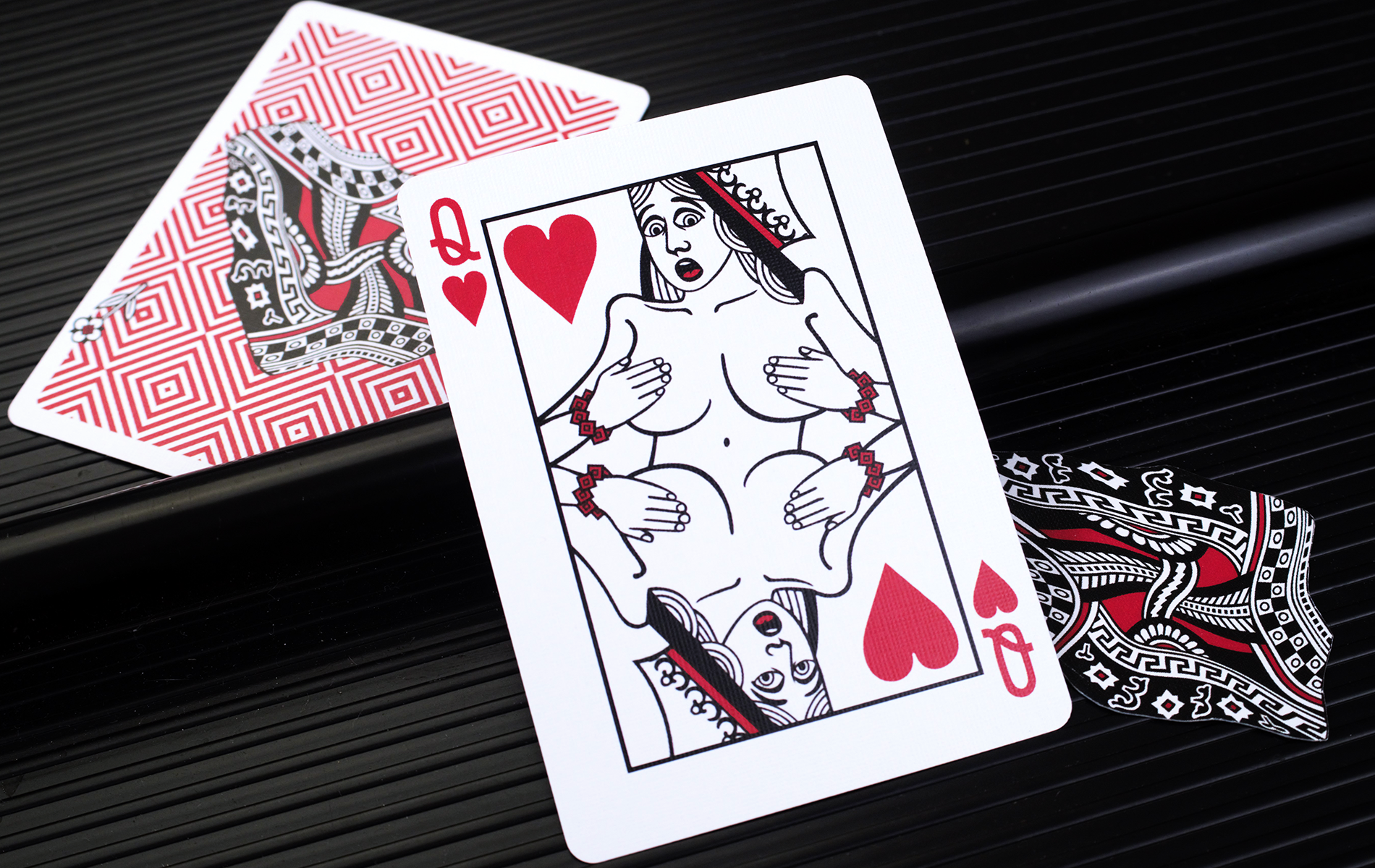 Twisted warp card to use as an extra phase in your Queen routine. So many sleights are available to spin the Queen so it looks like the card melts and warps around! Give it another twist and it goes back to normal. 3 warp cards of varying value and configurations to offer maximum flexibility.